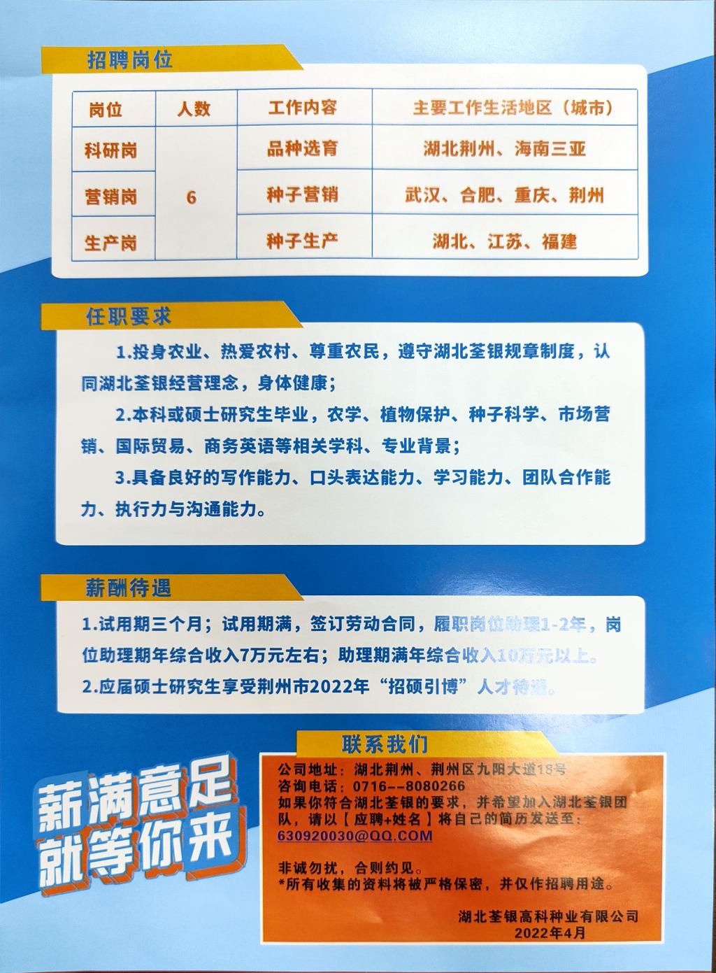 【三亿平台】湖北荃银高科种业有限公司招聘简介