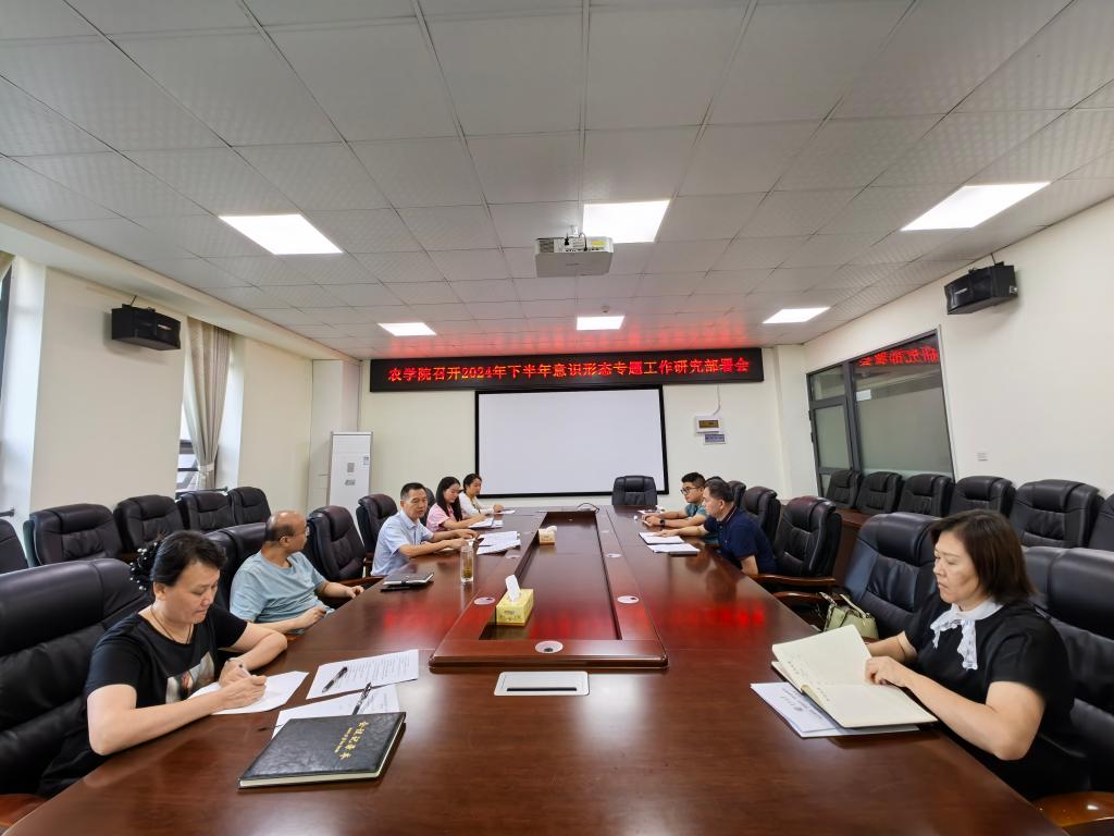 9月26日上午,三亿(中国)一站式服务官网党委在农科大楼3064会议室召开会议专题研究部署意识形态工作。会议由学院党委书记周锦华主持,学院党委委员、领导班子成员和各党支部书记、系部主任、科室负责人参加会议。