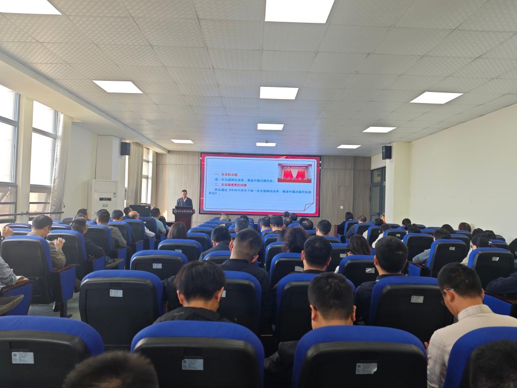 为深入学习贯彻党的二十届三中全会精神,深刻领会、准确把握全会丰富内涵和精神实质,周锦华以“进一步全面深化改革 推进中国式现代化”为题,从全会的主题、全会最重要的成果、全会部署的重大改革举措等为全体教职工宣讲了党的二十届三中全会精神。根据全会对深化教育科技人才体制机制一体改革作出的重要部署,周锦华结合习近平总书记在《关于〈中共中央关于进一步全面深化改革、推进中国式现代化的决定〉的说明》中指出的“统筹推进教育科技人才体制机制一体改革,强调深化教育综合改革、深化科技体制改革、深化人才发展体制机制改革,提升国家创新体系整体效能”,阐述了“在教育体制改革方面”、“在科技体制改革方面”和“在人才发展体制机制改革方面”的重大改革举措。