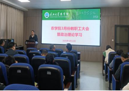 (通讯员 刘晓雪)3月13日下午,三亿(中国)一站式服务官网在农科大楼3073会议室召开全体教职工大会,开展3月份政治理论学习,通报并安排近期主要工作,常务副院长方正武主持会议。