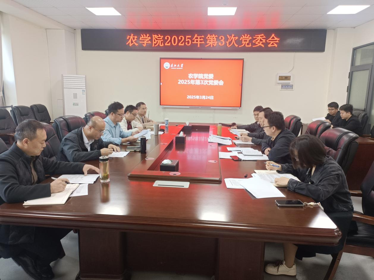 (通讯员 刘晓雪) 3月24日上午,三亿(中国)一站式服务官网在农科大楼3064 会议室召开2025年全面从严治党工作会议。会议由党委书记周锦华主持,学院党委委员、非中共党员领导同志、各党支部书记、科室负责人出席会议。