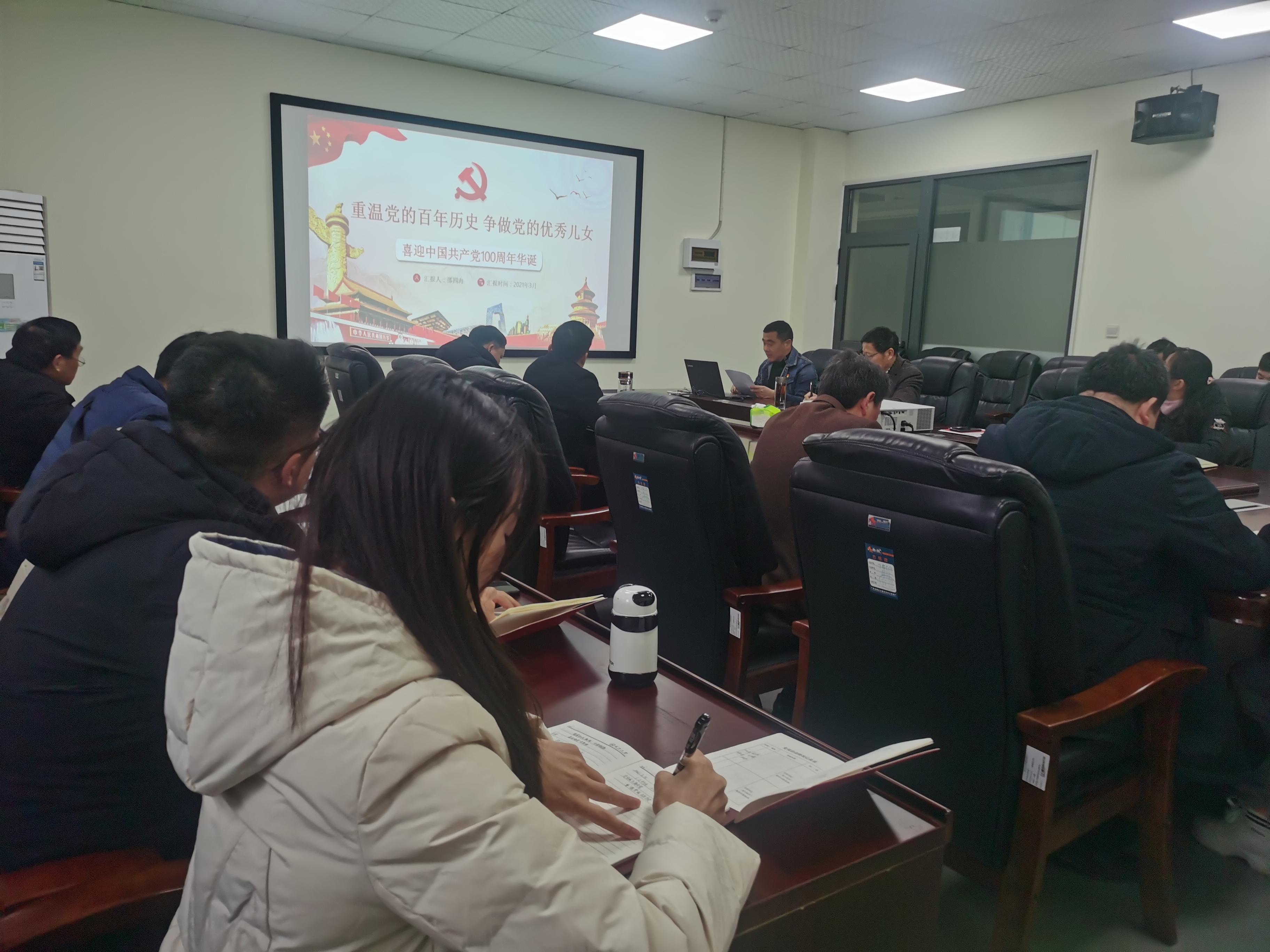 会议伊始,学院行政副院长邵四海以“重温党的百年历史 争做党的优秀儿女”为主题,从深入贯彻习近平重要讲话精神、认真学习中国共产党发展历程、正确领会百年历史的三大启示、吹响迎接百年党庆的冲锋号角等四个方面带领大家学习了习近平总书记在党史学习教育动员大会上的重要内容,并重温了中国共产党的发展历史。