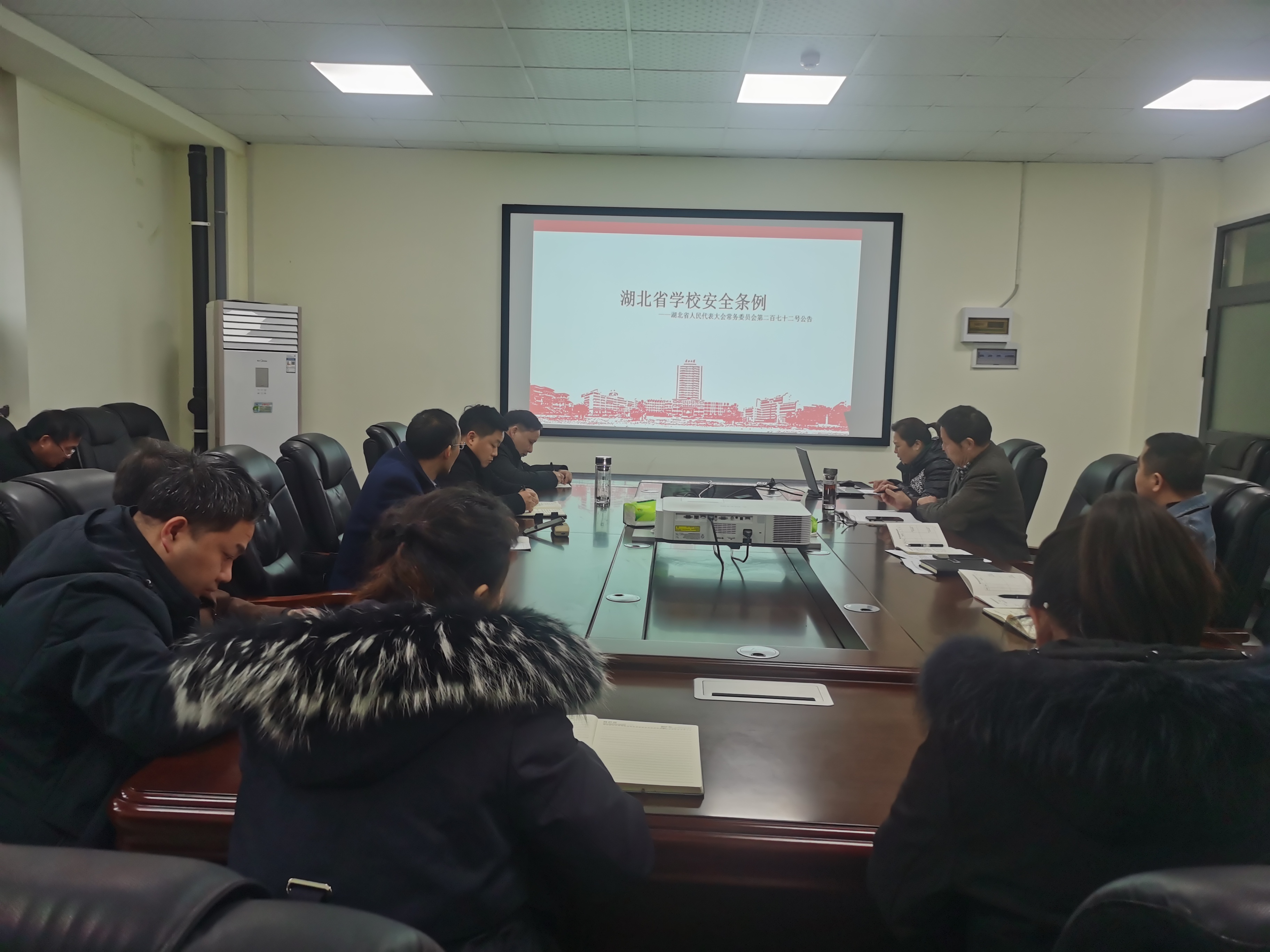 随后,学院办公室主任吴霞带领大家学习了《湖北省学校安全条例》,从总则、安全管理职责、校园安全管理、应急与事故处置、法律责任、附则等六个方面详细解读了各项条例,并分享了自己的学习体会。吴主任说,学校安全工作应当坚持以人为本、预防为主、实行政府负责、属地管理、社会协同、综合治理的工作机制。我们要抓好学校安全稳定工作,以创建平安、和谐的学校内部环境,推动学校教育工作再上新台阶。