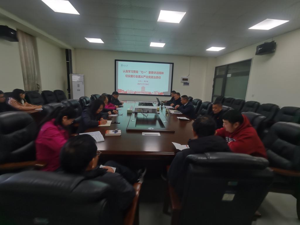 会议伊始,党委副书记谭亮魁以“认真学习贯彻“七一”重要讲话精神切实履行全面从严治党政治责任”为题,从准确把握习近平总书记“七一”重要讲话基本结构、充分认识习近平总书记“七一”重要讲话重大意义、深刻认识习近平总书记“七一”重要讲话丰富内涵以及坚决贯彻习近平总书记“七一”重要讲话实践要求等四个方面带领大家学习了“七一”重要讲话精神。谭书记表示,我们要强化使命担当,以严肃执纪问责落实全面从严治党责任;锚定目标任务,以清廉长大创建积极构建良好政治生态;深化改革创新,以优良工作质效切实保障学校事业发展。