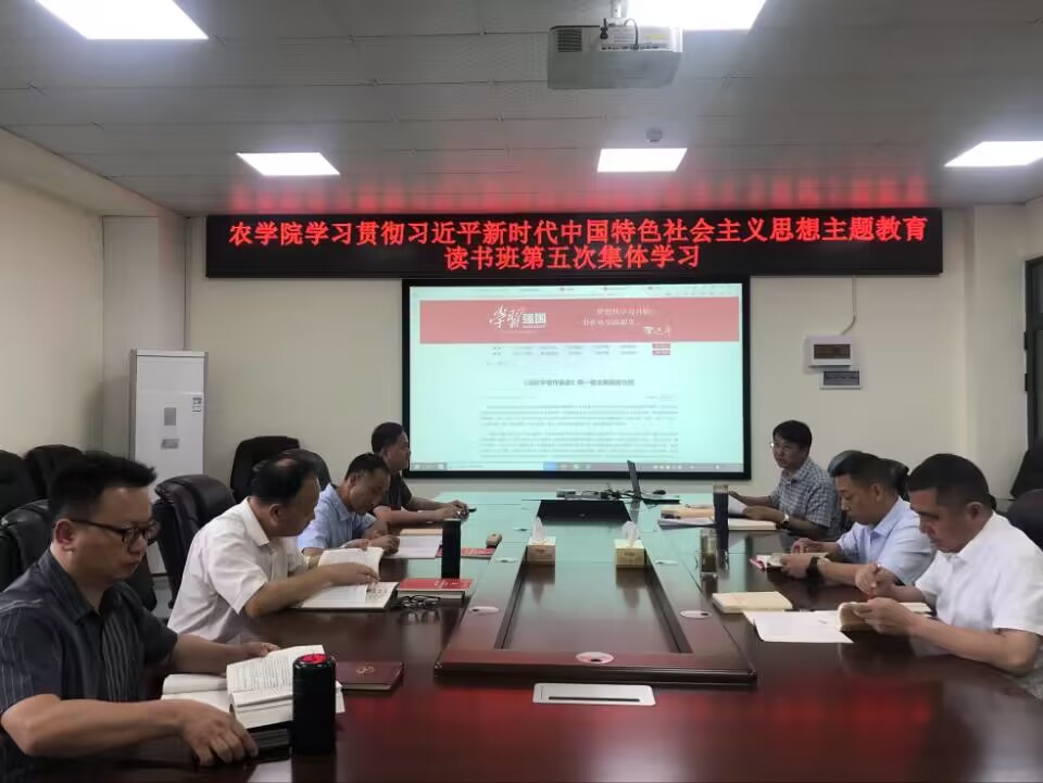 5月5日下午,三亿(中国)一站式服务官网学习贯彻习近平新时代中国特色社会主义思想主题教育读书班第5次集体学习在农科大楼3064会议室召开,会议由党委书记姜清奎主持,全体院领导和组织员参会。