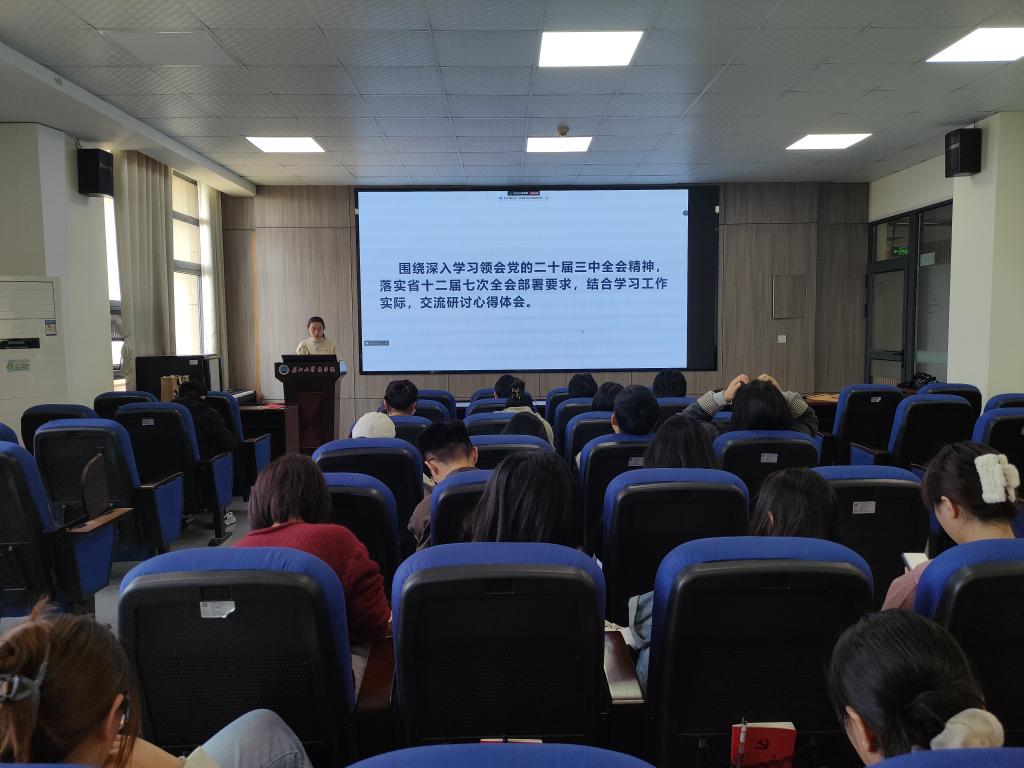 随后,党员周停、简渝丹、马发兵领学党的创新理论。全体党员围绕“深入学习领会党的二十届三中全会精神,落实省十二届七次全会部署要求”的主题,结合学习工作实际,展开讨论。文泳同志认为,作为一名学生,我们要将党的二十届三中全会精神与自己的专业知识相结合,从专业角度思考如何为推进中国现代化贡献力量。
