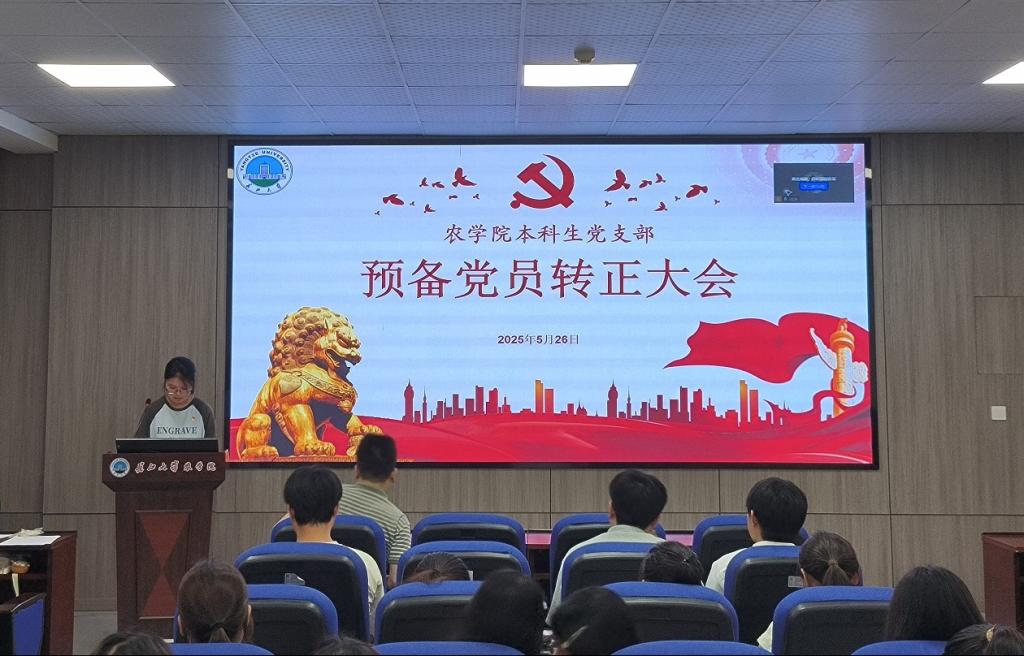 (通讯员 武芊睿)为不断提升党组织的战斗力和凝聚力,落实发展党员机制,5月26日,三亿(中国)一站式服务官网本科生党支部在农科大楼3073召开2025年上半年预备党员转正大会,讨论预备党员李慧明等13名同志的转正问题。应到会党员48名,实到会48名,应到会有表决权的正式党员14人,实到会14名,超过半数,符合党员发展流程。会议由党支部书记黄承石老师主持并作总结发言。
