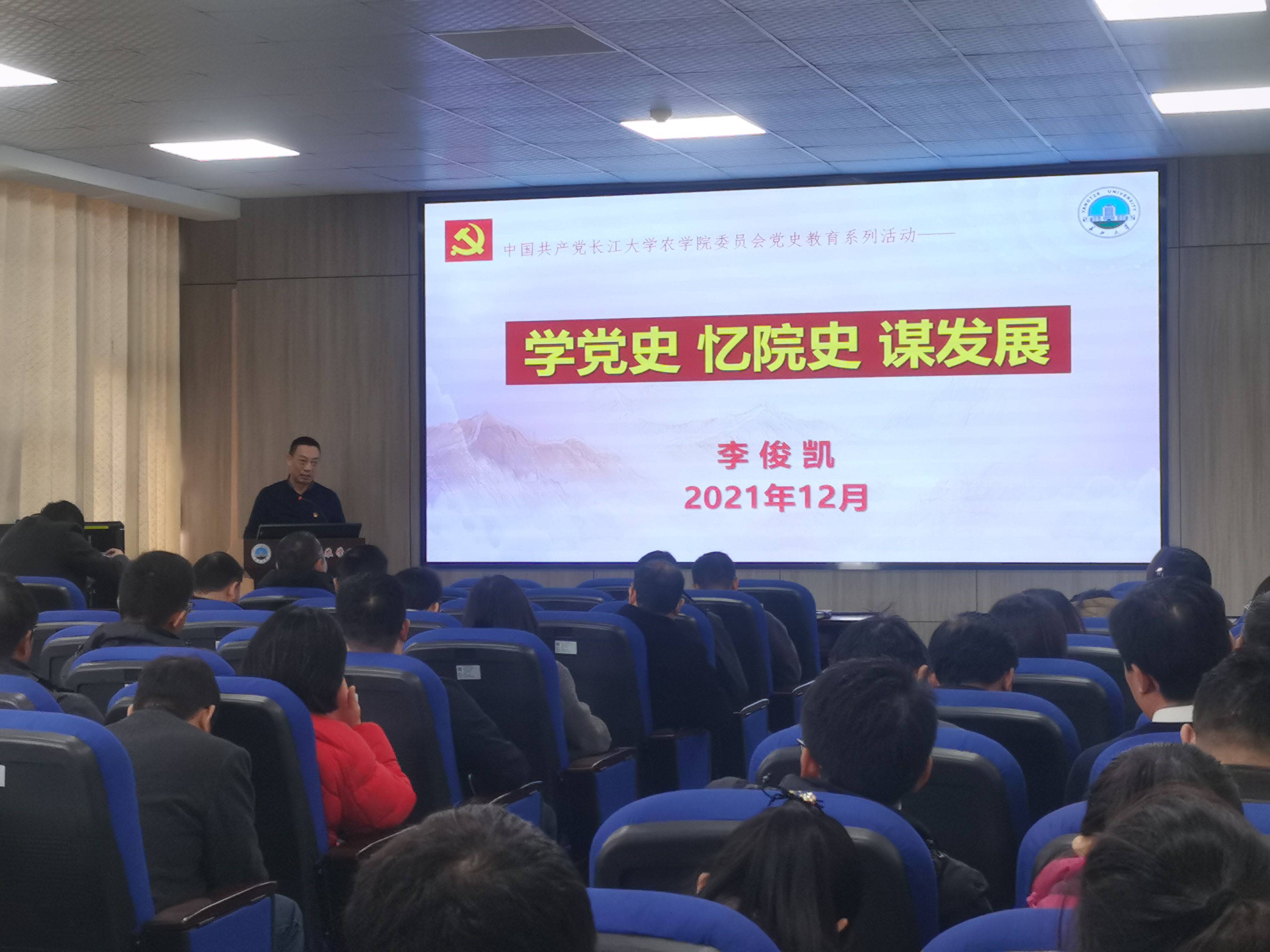 12月2日下午,在农科大楼3073会议室,三亿(中国)一站式服务官网院长李俊凯以《学党史 忆院史 谋发展》为题,为全院教职工上了一堂生动的党课。