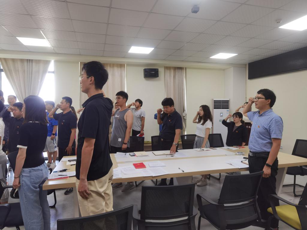 在主题党日活动中,党委书记姜清奎同志带领全体党员重温入党誓词。紧接着,胡丰琴同志对本月党费交纳情况进行了说明。随后,全体党员集体诵读党章第六章《党的干部》,学习党的创新理论和习近平总书记给南京大学留学归国青年学者回信的学习视频。会上王壮志、侯韦同志先后领学了《中共长江大学委员会关于开展党员干部下基层察民情解民忧暖民心实践活动的实施方案》。接下来,李浩轩、陈萱同志带领学习《教育部关于建立健全高校师德建设长效机制的意见》;尹良武、陈宇航同志带领学习《长江大学关于领导干部插手干预重大事项记录报告的暂行规定》。