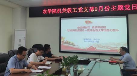 (通讯员 吴霞)9月23日下午,三亿(中国)一站式服务官网机关教工党支部全体党员在农科大楼3064会议室开展了9月支部主题党日活动,活动由支部书记张定国同志主持。