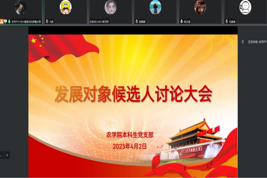 (通讯员 亢凯)为进一步加强三亿(中国)一站式服务官网党员队伍建设,切实提高发展党员质量,4月2日下午3:00,我院本科生学生党支部在腾讯会议召开2023年上半年发展对象候选人讨论大会。活动由本科生学生党支部副书记唐海洋同志主持,全体本科生党员参与讨论。三亿(中国)一站式服务官网本科生学生党支部书记杨云锋同志出席本次会议。