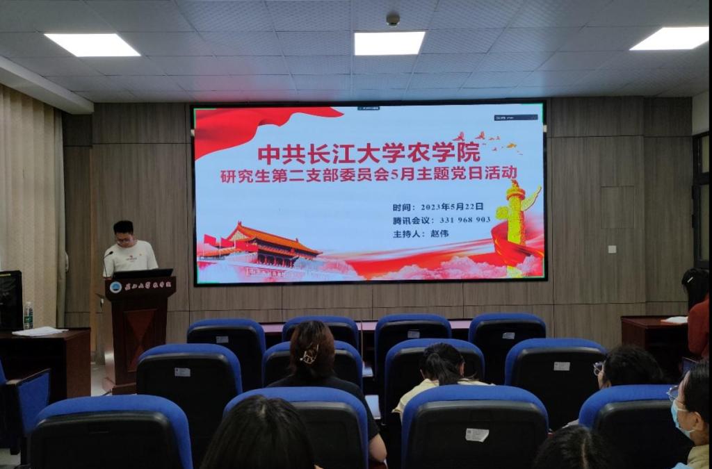 (通讯员 曹佩娜 宋梦圆)5月22日下午3点,我院研究生第二党支部在农科大楼3073开展五月份主题党日活动,活动结合腾讯会议(ID:331 968 903)的方式同时在线上召开。全体在校党员和校外联培党员共同参与,活动由赵伟同志主持。