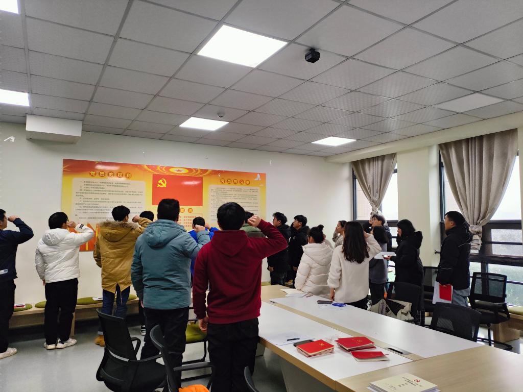 李瑞杰带领全体党员重温入党誓词。罗丽娅对本月党费交纳情况进行简要说明。郑杰鑫诵读《中国共产党章程(修正案)》第一章相关内容。韩金玲为党员们分享了“共和国勋章”获得者张富清朴实纯粹、淡泊名利的精彩人生。范欣、刘可为领学了《中共中央举行纪念毛泽东同志诞辰130周年座谈会 习近平发表重要讲话》内容。“作为一名学生党员,结合《国家主席习近平发表二〇二四年新年贺词》与《长江大学2024年新年献词》,展望2024年,以“四个更加”的理念继往开来、乘势而上、继续奔跑,以更加优异的成绩向中华人民共和国成立75周年献礼。”全体党员展开研讨。