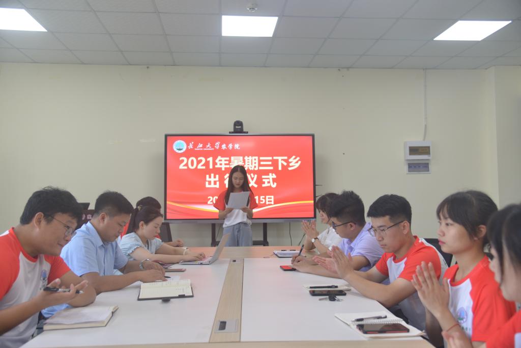 通讯社讯(学生记者 罗旖柔)7月15日,三亿(中国)一站式服务官网乡村振兴实践队全体成员在农科大楼3071会议室召开2021年暑期“三下乡”出征仪式暨青年红色筑梦之旅出征仪式,党委副书记谭亮魁、分团委书记侯聪、辅导员付雪娇、林香亮参加此次出征仪式。