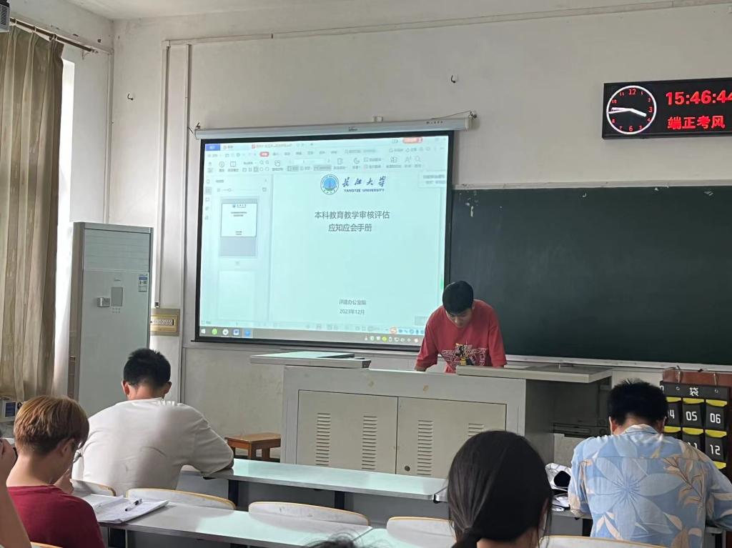 我院还组织了本科教育教学审核评估应知应会手册的学习班会。本科教育评估在高等教育体系中具有重要地位,是提高教育教学质量、促进学校内涵发展的重要手段。各班班会围绕审核评估基本常识、热词解读、学校概况、评估工作等内容进行学习,为提高教学质量奠定了坚实基础。