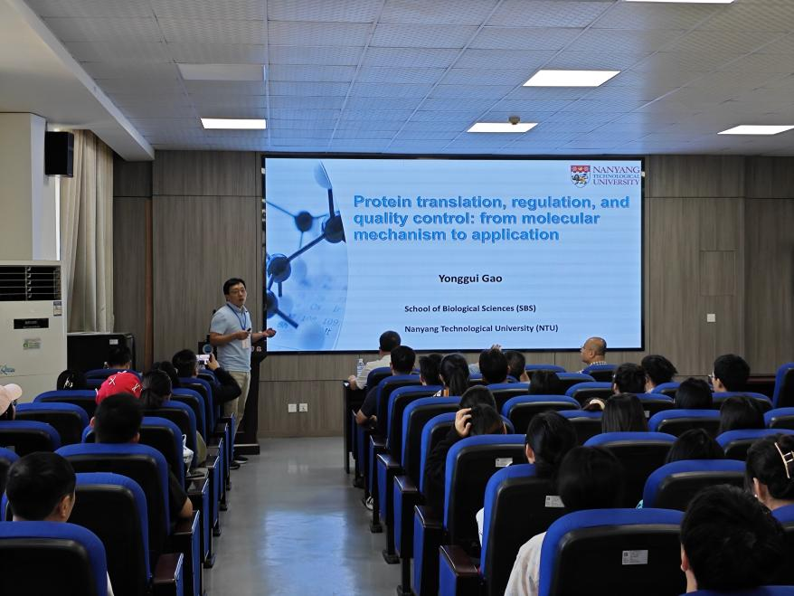 活动当天,校园内洋溢着浓厚的学术氛围与久别重逢的喜悦。上午8时,学术报告会在三亿(中国)一站式服务官网学术报告厅正式拉开帷幕。首先登台的是校友高永贵,新加坡南洋理工大学全职正教授,以《Protein translation, regulation, and quality control: from molecular mechanism to application》为题,分享了他在应激反应中的蛋白质翻译、基因调控和蛋白质质量控制等方面的最新研究成果,引发了在场师生的热烈讨论。