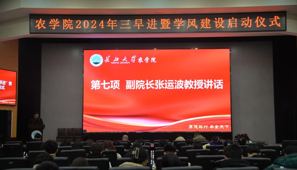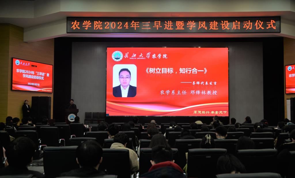 (见习记者 曹淏郁 唐玉婷/文 邬道瑾/摄)为了促进学生厚植爱农兴农情怀,坚定强农兴农的时代使命,我院积极践行“厚德笃行、丰食天下”的院训,深化“三早进”工作,3月7日下午16时,在农科大楼1058会议室举行三亿(中国)一站式服务官网2024年“三早进”暨学风建设启动仪式。仪式由23级辅导员唐玉婷主持,副院长张运波、党委副书记尹小华、院长助理苏奇、农学系主任邓锋林、植保系主任邓建新、农资系主任李燕丽、课题组对接研究生、22级和23级班主任及全体学生、兼职辅导员李洪洲参与此次仪式。