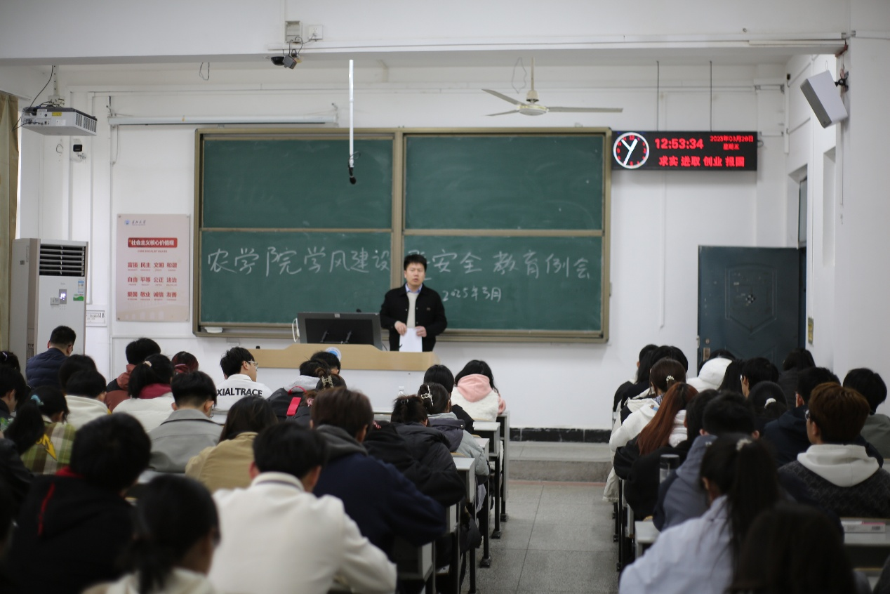 (通讯员 刘钬桥 臧仕骏)3月28日中午12:35,三亿(中国)一站式服务官网于七教105教室召开学风建设暨安全教育例会。学院党委副书记尹小华、学工办主任黄承石出席会议,各班安全委员、班长及全体学习科创部成员共同参会。会议围绕学风建设与学生安全管理两大主题展开部署,旨在进一步强化学生责任意识,推动学院高质量发展。