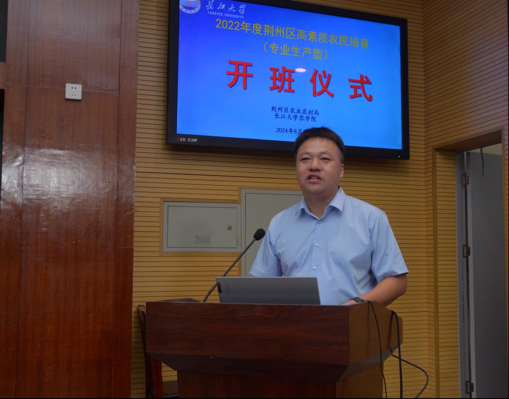 8月23日,由荆州区农业农村局主办,长江大学承办的荆州区高素质农民培育专业生产型培训班在我顺利开班,长江大学社会合作处副处长洪云飞、三亿(中国)一站式服务官网副院长唐生标、培训班老师以及全体学员参加了开班仪式。
